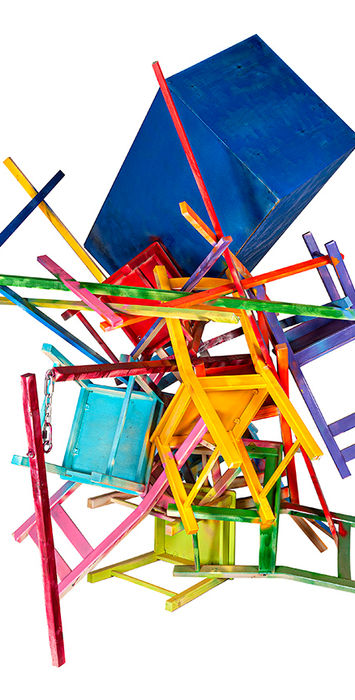 “By design my art is not pristine,” he says. “These pieces, like our bodies, are vulnerable to aging, settling, and decay. My biggest challenge as an artist is to listen to my unconscious process and allow the intended piece to emerge.”